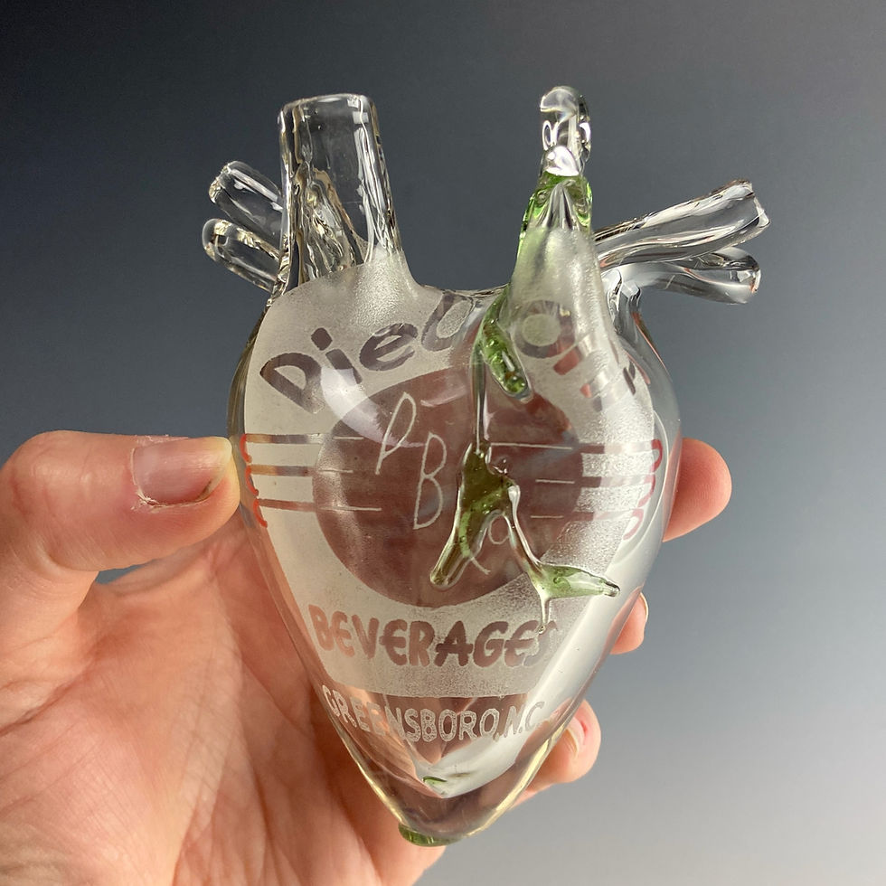 Blown glass fruit made using old soda bottles. Inspired by Walmart's new engineered "tropickle", an engineered sweet pickle. It shows a possible future of companies creating their own fruit and genetically engineering our food.